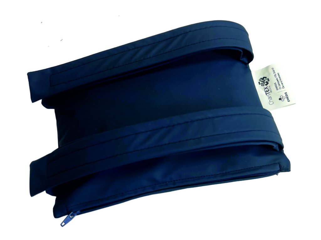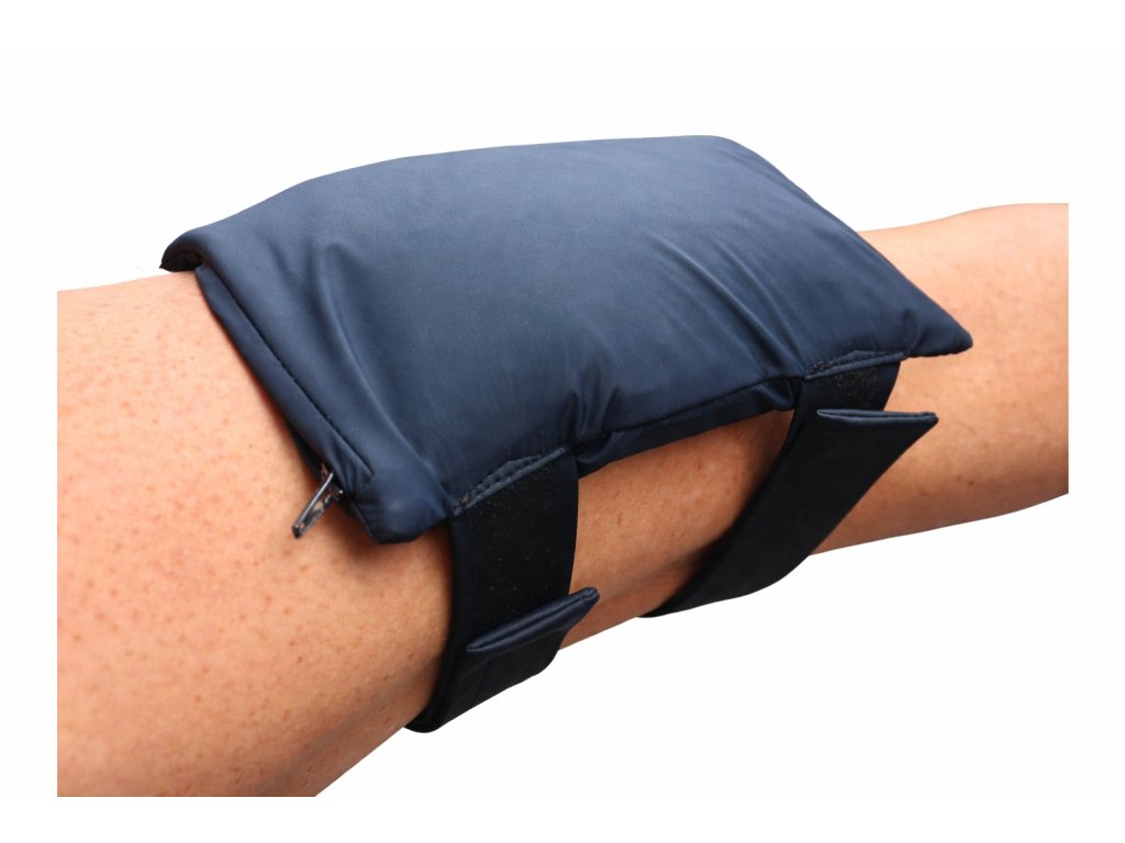 Popis: Tato rehabilitační pomůcka slouží k zatížení končetin při vůlí neovlivnitelných svalových kontrakturách, či jako prevence svalových kontraktur. Vyrábí se ve třech variantách váhy: 1 kg, 2 kg, 3 kg. Boční strany jsou opatřeny popruhy se suchými zipy, kterými lze polštářek ke končetině snáze připevnit.
